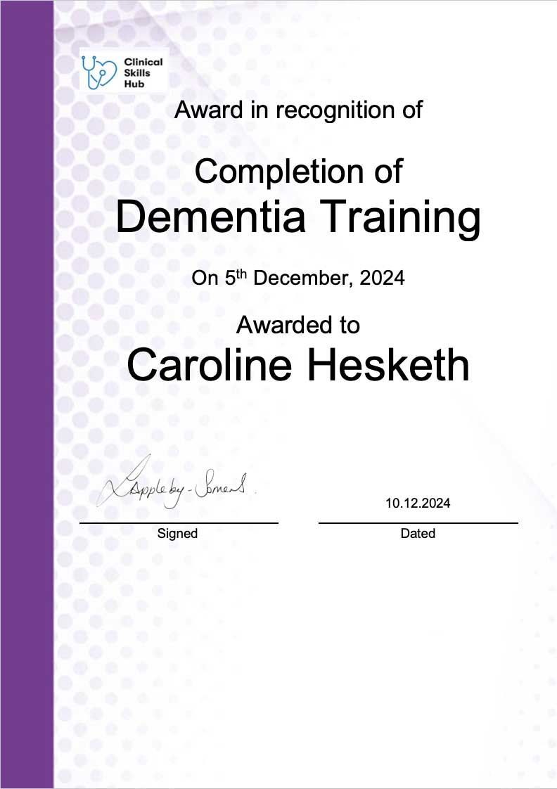 From the very beginning, Caroline demonstrated a remarkable ability to connect with my Mum, offering kindness and patience even in the most challenging situations. She has a deep understanding of dementia care, always approaching my Mum with dignity, empathy, and respect. Caroline has a wonderful way of creating a calm and reassuring environment, which has been invaluable in helping my Mum feel secure and at ease.